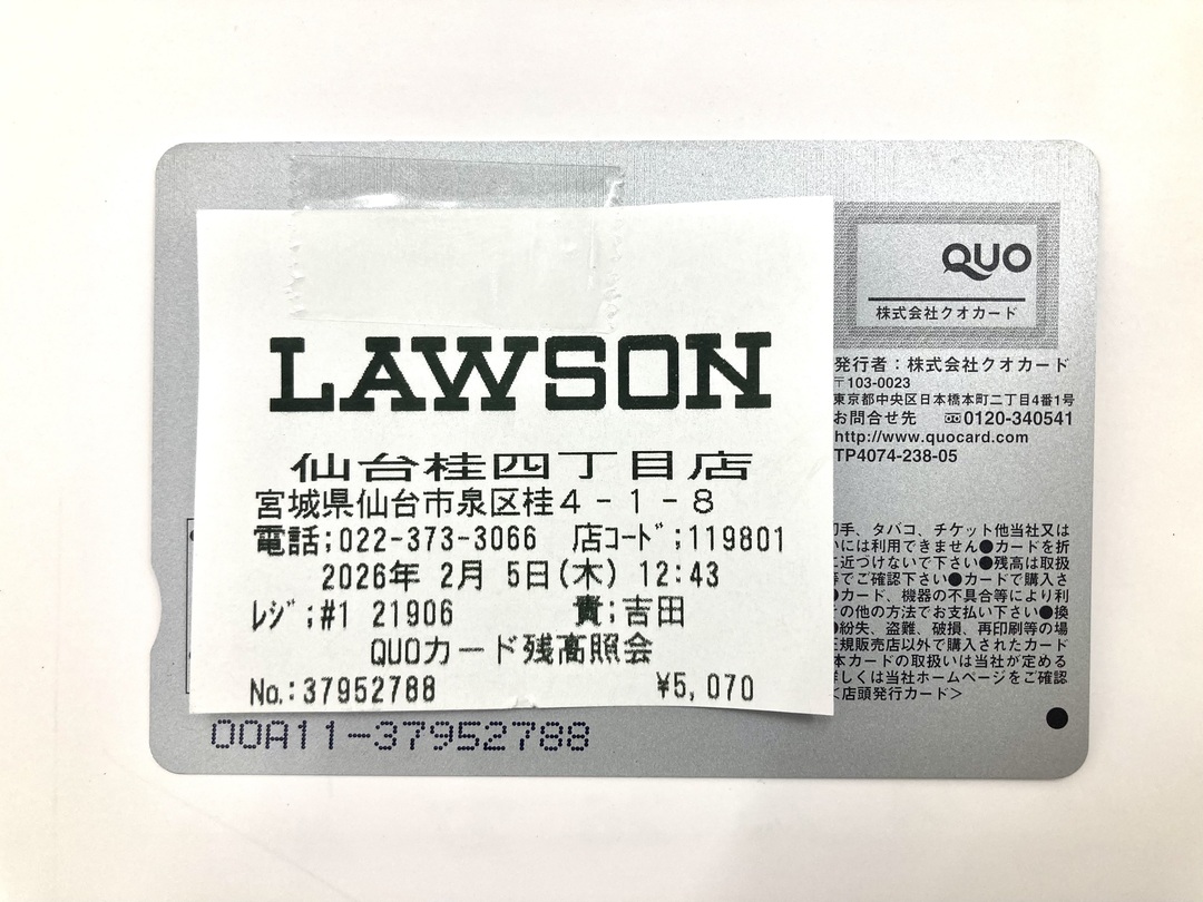 QUOカードの店頭発行カードは画像2枚目のような残高レシートが必要になります!